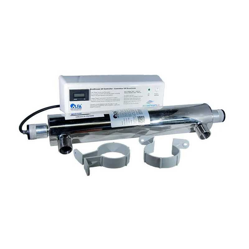 Equipé d'une lampe d'une puissance de 48W permettant de traiter un débit instantané maximum de 2.7m3/h, cet Ecostream 1 est en inox 304S. L'entrée et la sortie sont en 1'' BSP male.